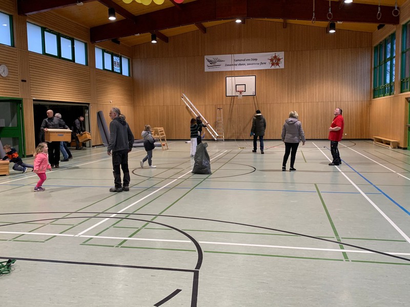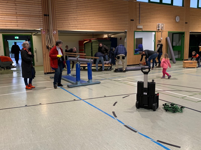 Aufbauarbeiten Turnhalle
